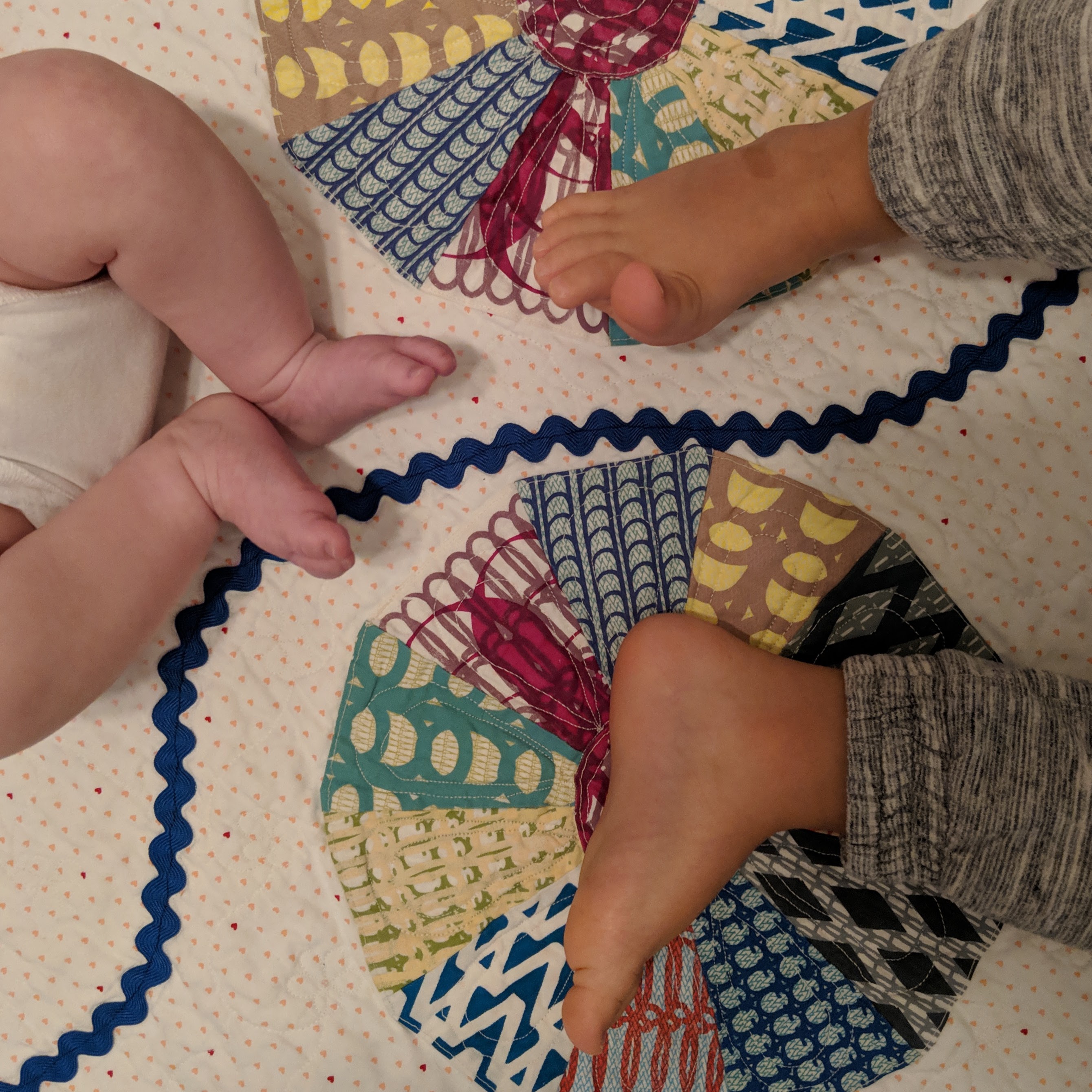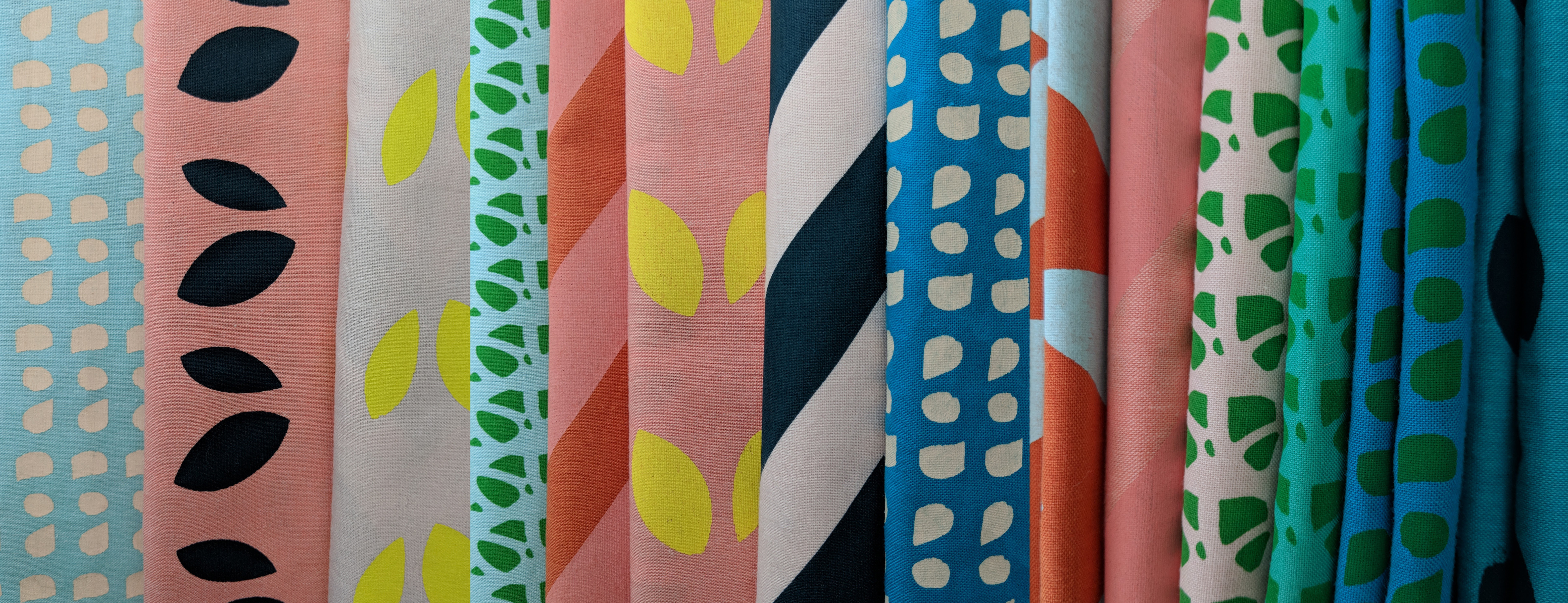 I am an artist living and working in Pittsburgh, PA. I live with my husband Jordan, our son, our daughter, along with our two furry friends Sidney and Professor. In 2013 my work shifted and I began to focus on surface design, primarily screen printed yardage. Since then my art has expanded, using print as a vehicle to create multiples for patterns, installations, quilts and interactive sculpture. Even when not using fabric the pieces tend to be treated in many of the same ways. My mother, who is a quilter, has been the inspiration to work with fabric and quilting. My most recent pieces have been directly inspired by my kids. I design and hand print all my work in my home studio. All fabric on this site is printed with water-based ink. I received my BFA from Clarion University of Pennsylvania and my MFA from West Virginia University.