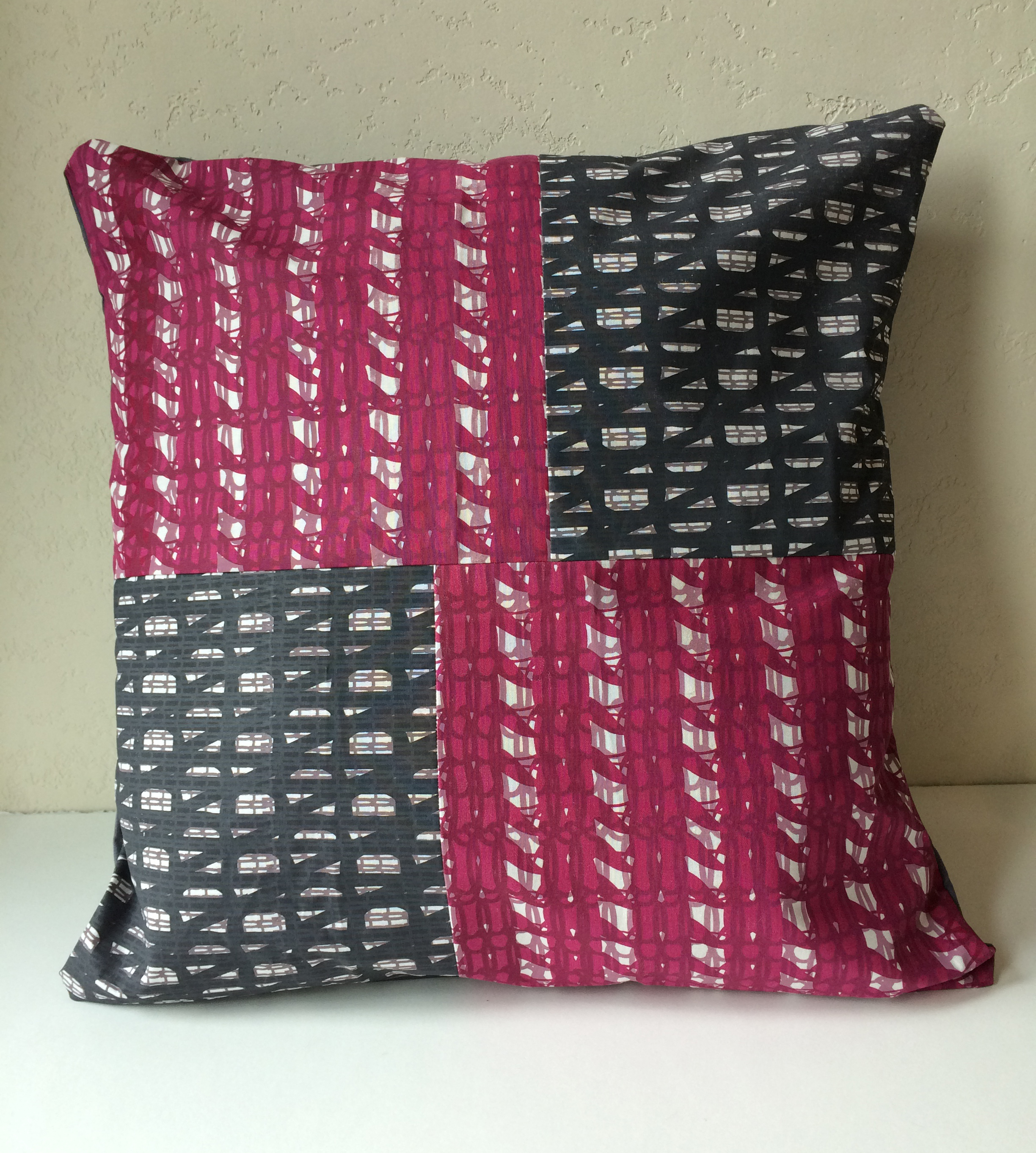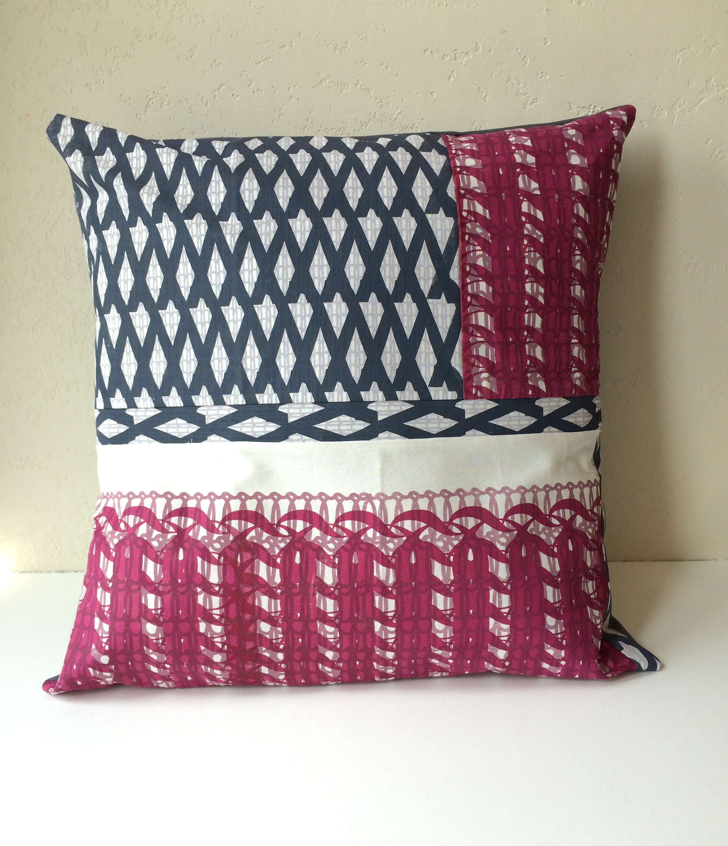 This bag uses three of my screen printed fabrics. I included the light pinstriped canvas.