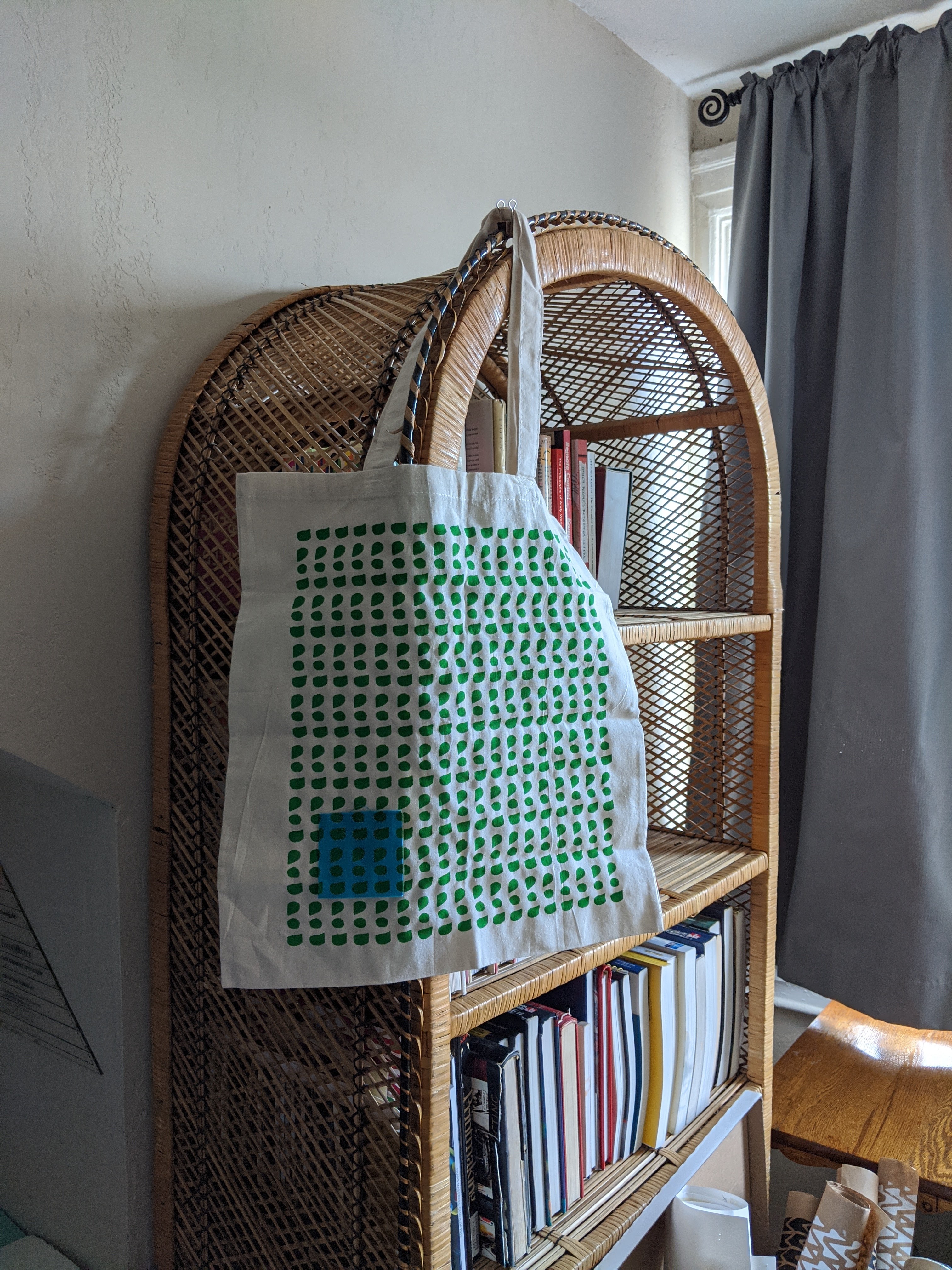I needed one more blue square for the Alphabet quilt and decided to print on a bag too!