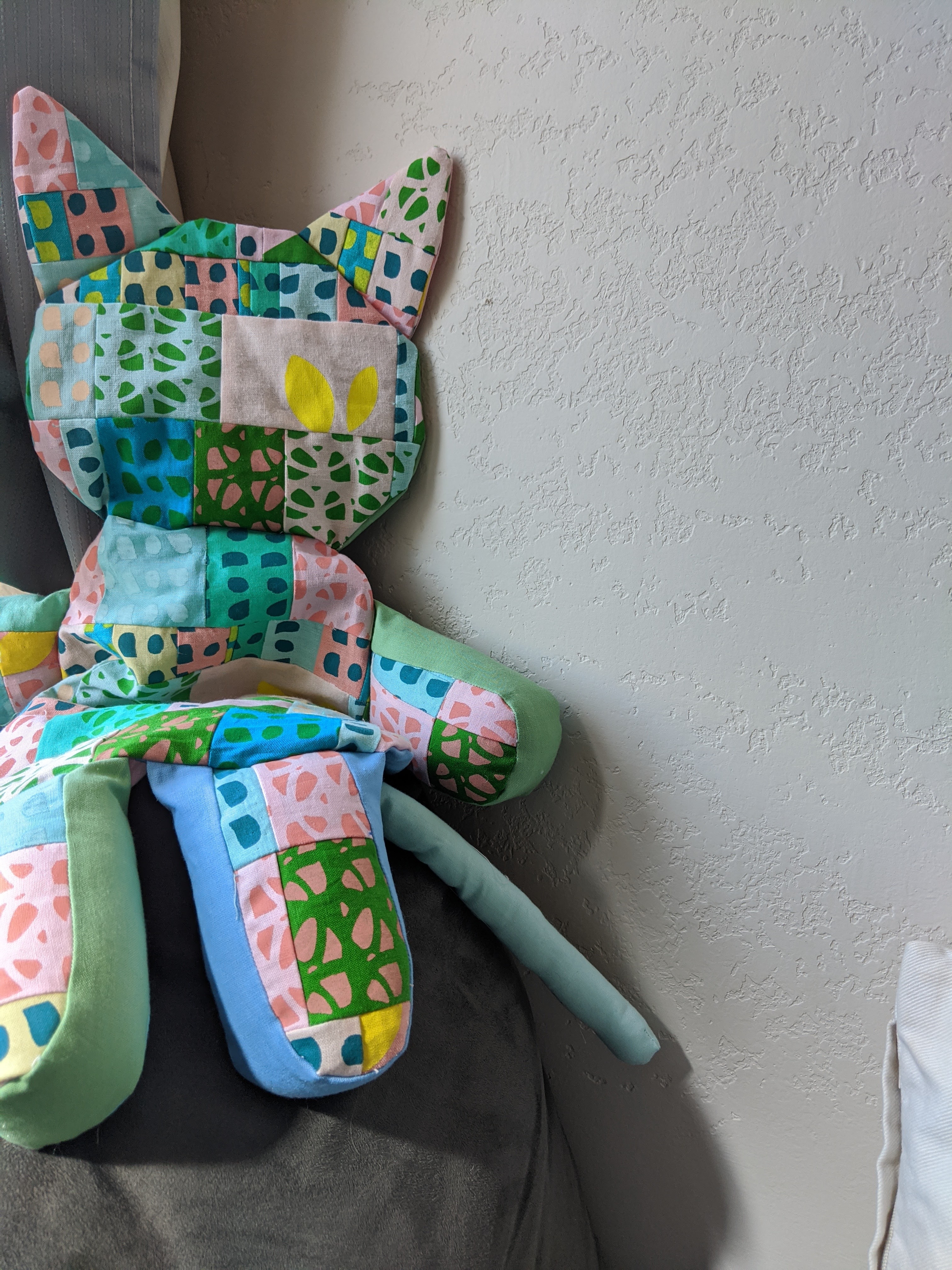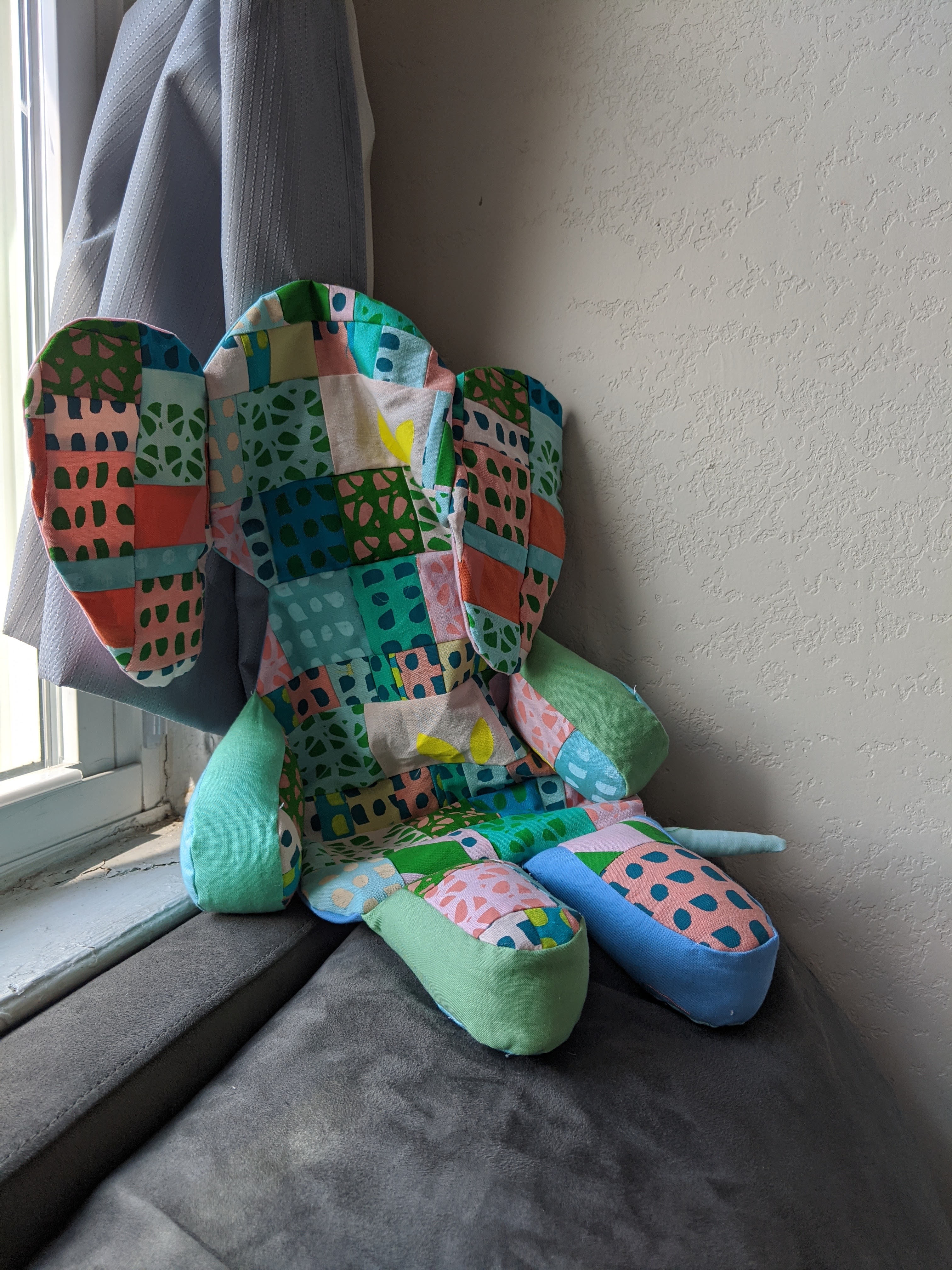 These large pillows are in my kid’s rooms. They get used a lot. I am not sure how the hole got in the pillow but I decided to mend it with a piece of scrap fabric.
